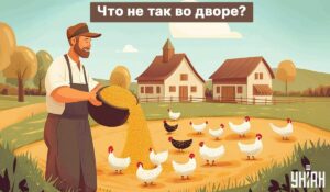 La scena raffigura un cortile idilliaco in cui le galline vengono nutrite con il grano scelto dal proprietario. Tuttavia, nonostante l’apparenza, nell’immagine c’è un grave errore. Dovrete dividere l’immagine in parti e usare le vostre capacità di ragionamento, immaginazione e buon senso per trovare la risposta. E non dimenticate, avete solo 5 secondi!